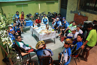 Luchito Delgado, es uno de los fundadores del Team Inter. Ciclista de 74 orgullosos años de edad. Le decimos "Medio Menú" porque sólo puede con la sopa. Estábamos presurosos en ayudarlo porque era la única oportunidad que él tendría de tener una papa en la boca y otras en las piernas....